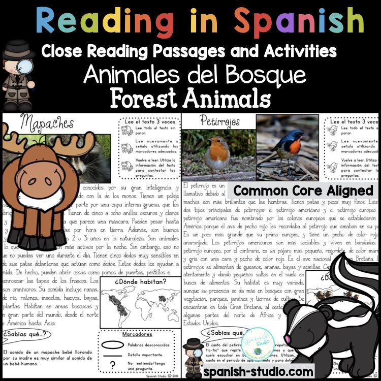 Close Reading, an essential component of Common Core Learning Standards, encourages students to analyze text deeply and extract meaningful insights. These reading passages in Spanish help students build vocabulary, comprehension skills, and cultural awareness while learning about fascinating forest creatures.